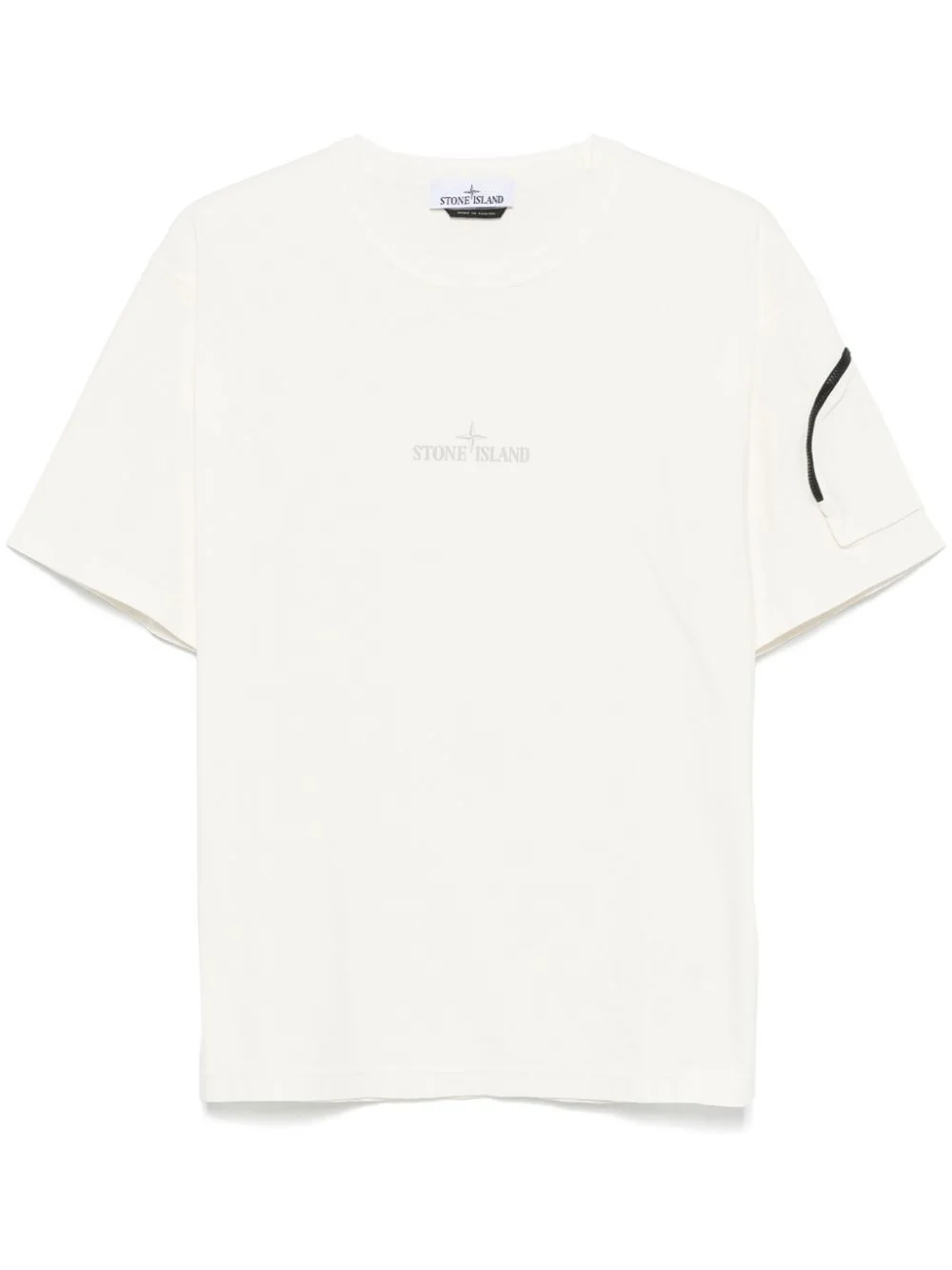 logo-print T-shirt Highlights - Ecru - Crew neck - Short sleeves - Sleeve zip pocket Imported Composition Organic Cotton 100% Washing instructions Machine Wash
