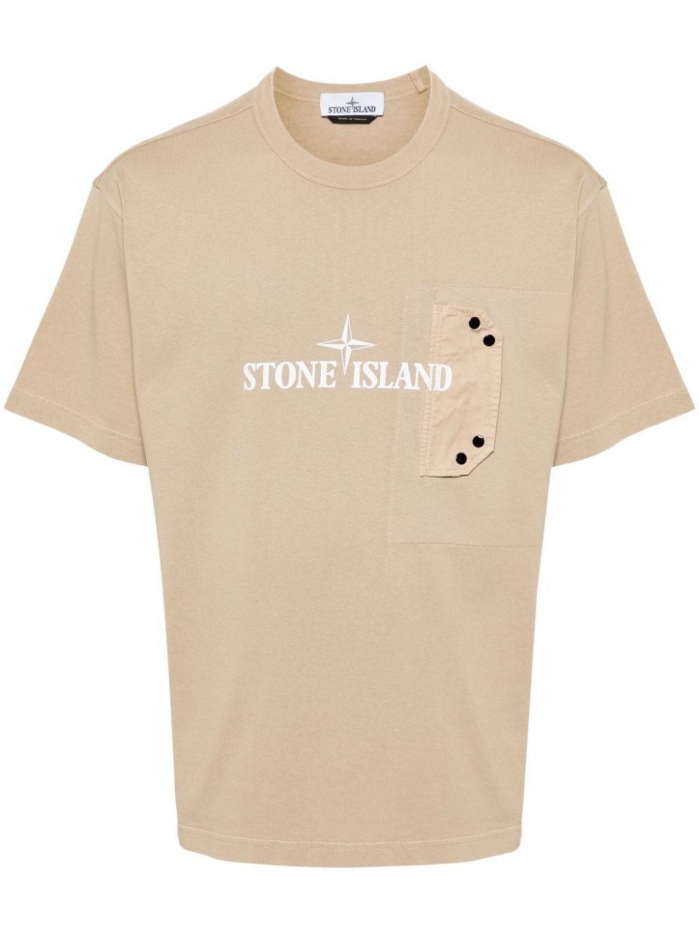 logo-print T-shirt Highlights - Sand beige - Cotton - Lightweight jersey - Logo print to the front - Crew neck - Short sleeves - Straight hem - Chest flap pocket Imported Composition Cotton 100% SIZE & FIT Model measurements Height 6 ft 2 in(1.87 m) Bust/Chest 37.79 in(96 cm) Hips 37.79 in(96 cm) Waist 30.31 in(77 cm) FittingInformation Designed for a relaxed fit, this piece allows for comfort and movement when worn Made from a midweight non-stretch fabric, this piece offers minimal elasticity when worn This piece fits true to size – take your usual size Washing instructions Machine Wash