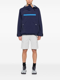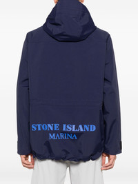 Marina hooded panelled jacket Highlights - Navy blue - Drawstring hood - Front zip fastening - Light blue panel detail - Snap button pockets Imported Composition Outer: Polyurethane 100%, Polyamide 100% Lining: Polyamide 100% Washing instructions Hand Wash