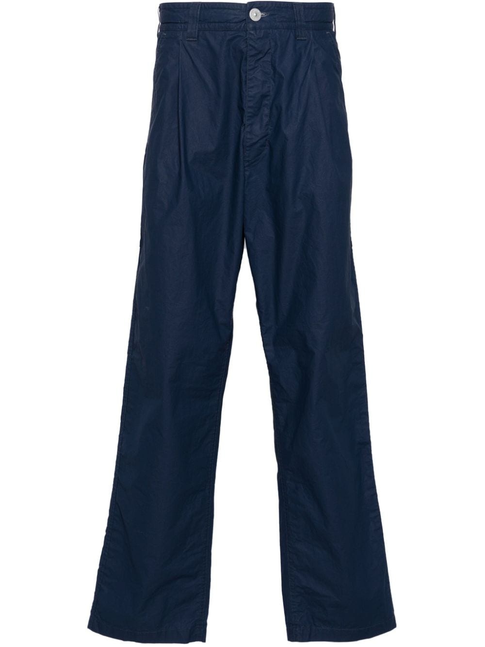 logo-print trousers Highlights - Navy blue - Cotton - Pleat detailing - Logo print to the rear - Mid-rise - Belt loops - Front button fastening - Internal drawstring fastening waist - Two side slit pockets - Rear patch pocket - Tapered leg Made in Italy Composition Cotton 100% SIZE & FIT Model measurements Height 6 ft 2 in(1.88 m) Bust/Chest 36.61 in(93 cm) Hips 35.82 in(91 cm) Waist 27.95 in(71 cm) FittingInformation Designed for a straight-leg, allowing for an unrestricted and comfortable fit over the leg Adjust this piece’s waistband to your preference using the drawstring Made from a midweight non-stretch fabric