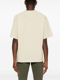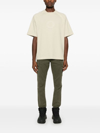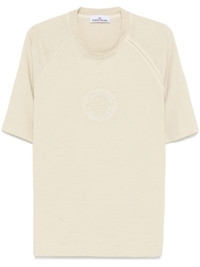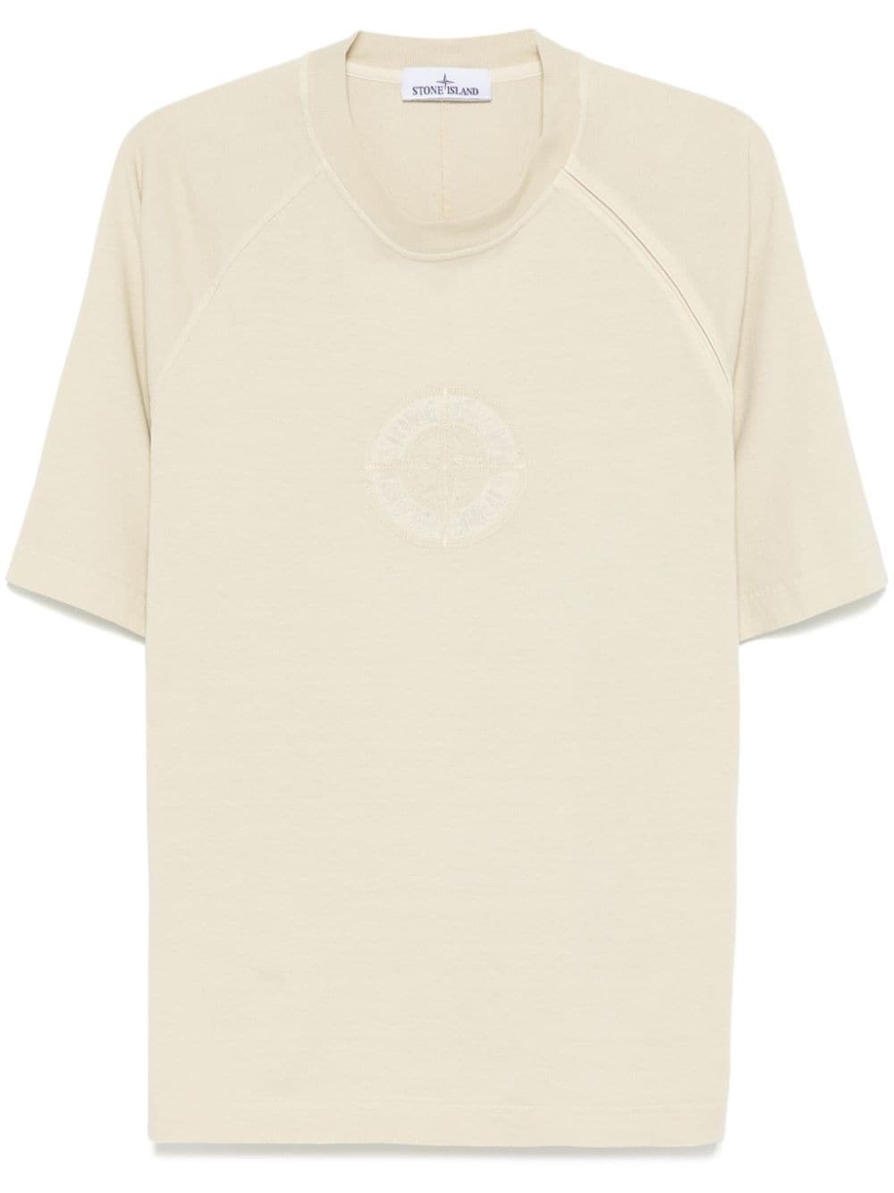 organic-cotton T-shirt Highlights - Sand beige - Organic cotton - Jersey texture - Garment dyed - Crew neck - Short raglan sleeves - Signature compass motif - Unlined - Straight hem Made in Italy Composition Organic Cotton 100% SIZE & FIT Model measurements Height 6 ft 2 in(1.88 m) Bust/Chest 36.61 in(93 cm) Hips 35.82 in(91 cm) Waist 27.95 in(71 cm) FittingInformation Designed for a boxy fit, intended for a loose fit throughout Made from a midweight non-stretch fabric, this piece offers minimal elasticity when worn