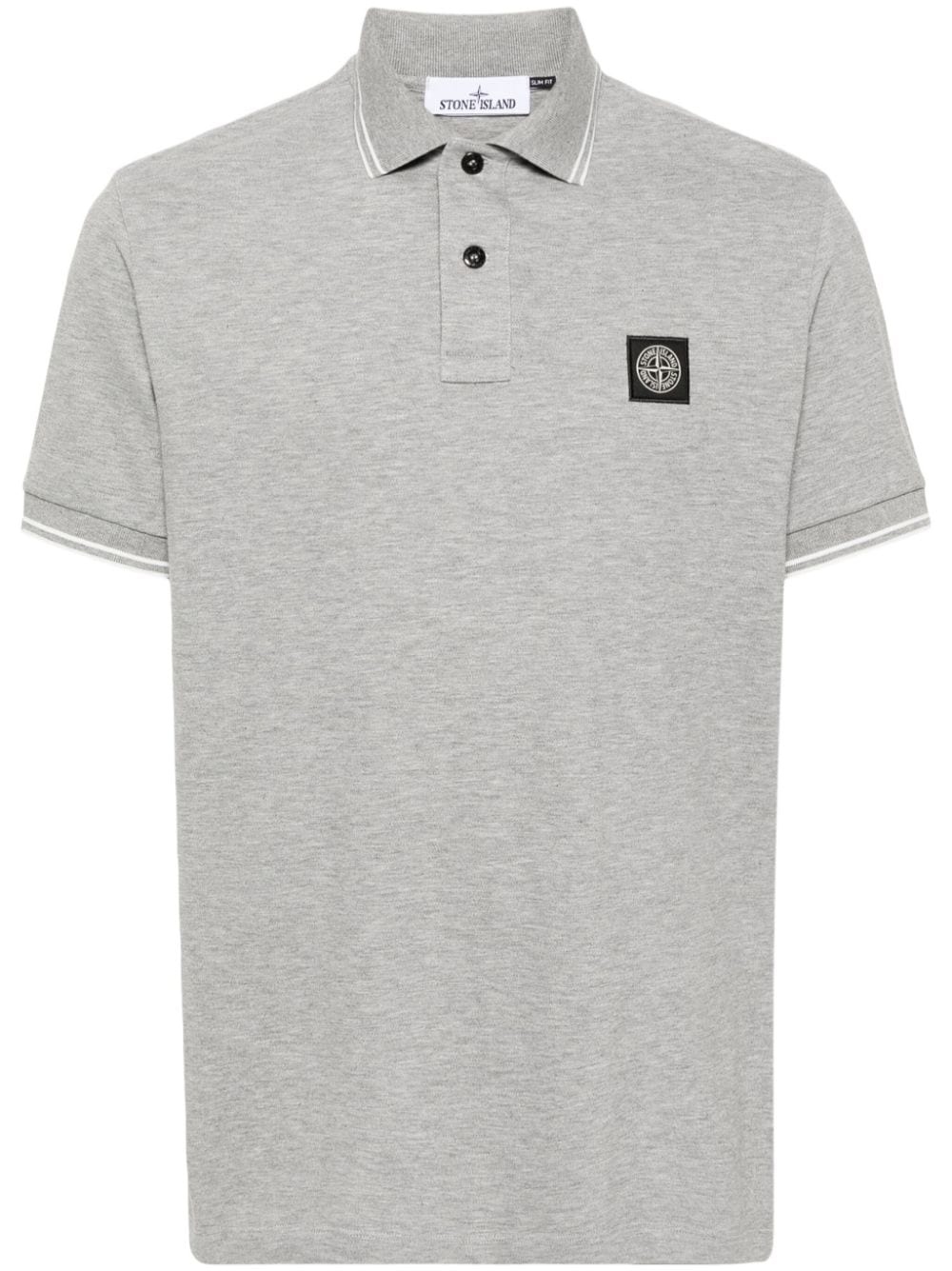 pique cotton polo shirt Made from stretch-cotton spun into a pique weave, this light-grey short-sleeve polo shirt from Stone Island is decorated with a contrasting Compass applique at the chest — a nod to the brand's adventurous spirit and approach to garments. Highlights - Light grey - Stretch-cotton - Pique weave - Melange effect - Striped tipping - Polo collar - Short sleeves - Front button placket - Signature compass motif - Short side slits - Straight hem Made in Italy Composition Cotton 95%, Elastane 5% SIZE & FIT Model measurements Height 6 ft 0 in(1.84 m) Bust/Chest 35.82 in(91 cm) Hips 37 in(94 cm) Waist 28.34 in(72 cm) Measurement CHEST 38.97 in(99 cm) FittingInformation Designed for a slim fit, this polo shirt offers a comfortable fit that sits just away from the body Made from a midweight stretch fabric, this piece offers elasticity and flexibility when worn