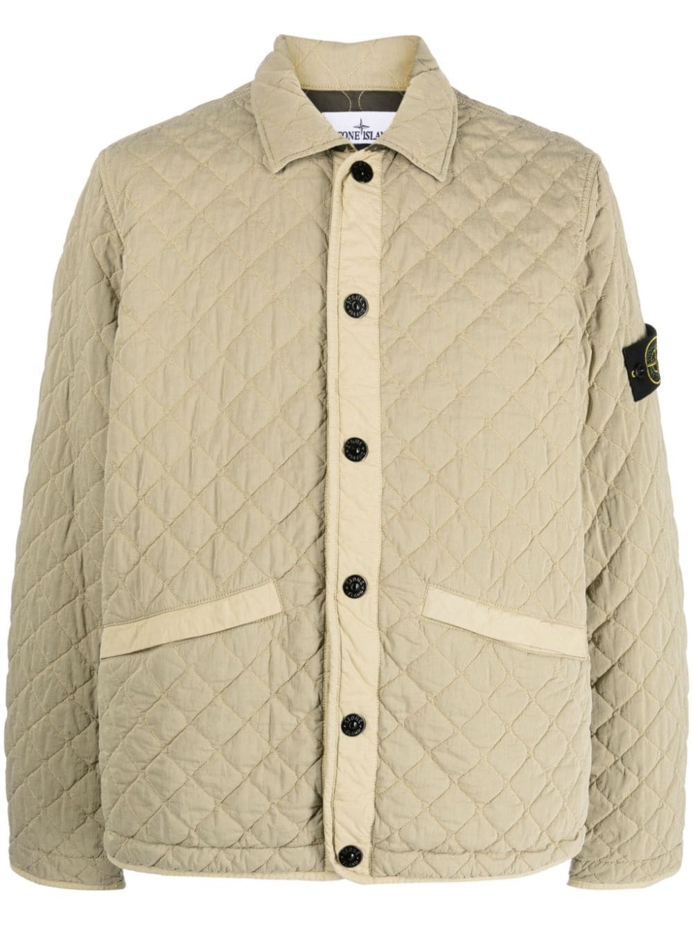 quilted press-stud fastening bomber jacket Made in Italy from lightweight brushed nylon cotton tela treated with an anti-drop agent for water resistance, this ecru iteration of the 50 Fili Quilted-TC padded jacket reveals Stone Island's focus on both performance and design. It is complete with a detachable Compass patch at the sleeve as a nod to the brand's curious and adventurous spirit. Highlights - Khaki green - Cotton blend - Quilted finish - Contrasting panel detail - Logo patch at the sleeve - Press-stud fastening cuffs - Classic collar - Front press-stud fastening - Long sleeves - Two front welt pockets - Straight hem Made in Italy Composition Outer: Cotton 79%, Polyamide 21% Lining: Polyester 100%, Polyamide 100% SIZE & FIT Model measurements Height 6 ft 2 in(1.87 m) Bust/Chest 38.18 in(97 cm) Hips 36.61 in(93 cm) Waist 29.13 in(74 cm) Measurement CHEST 42.51 in(108 cm) SLEEVE LENGTH 25.19 in(64 cm) LENGTH 26.37 in(67 cm) WAIST 40.94 in(104 cm) FittingInformation Designed to be unstructured, offering a loose fit throughout Made from a quilted non-stretch fabric, giving it no natural elasticity This piece fits true to size – take your usual size Washing instructions Machine Wash