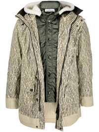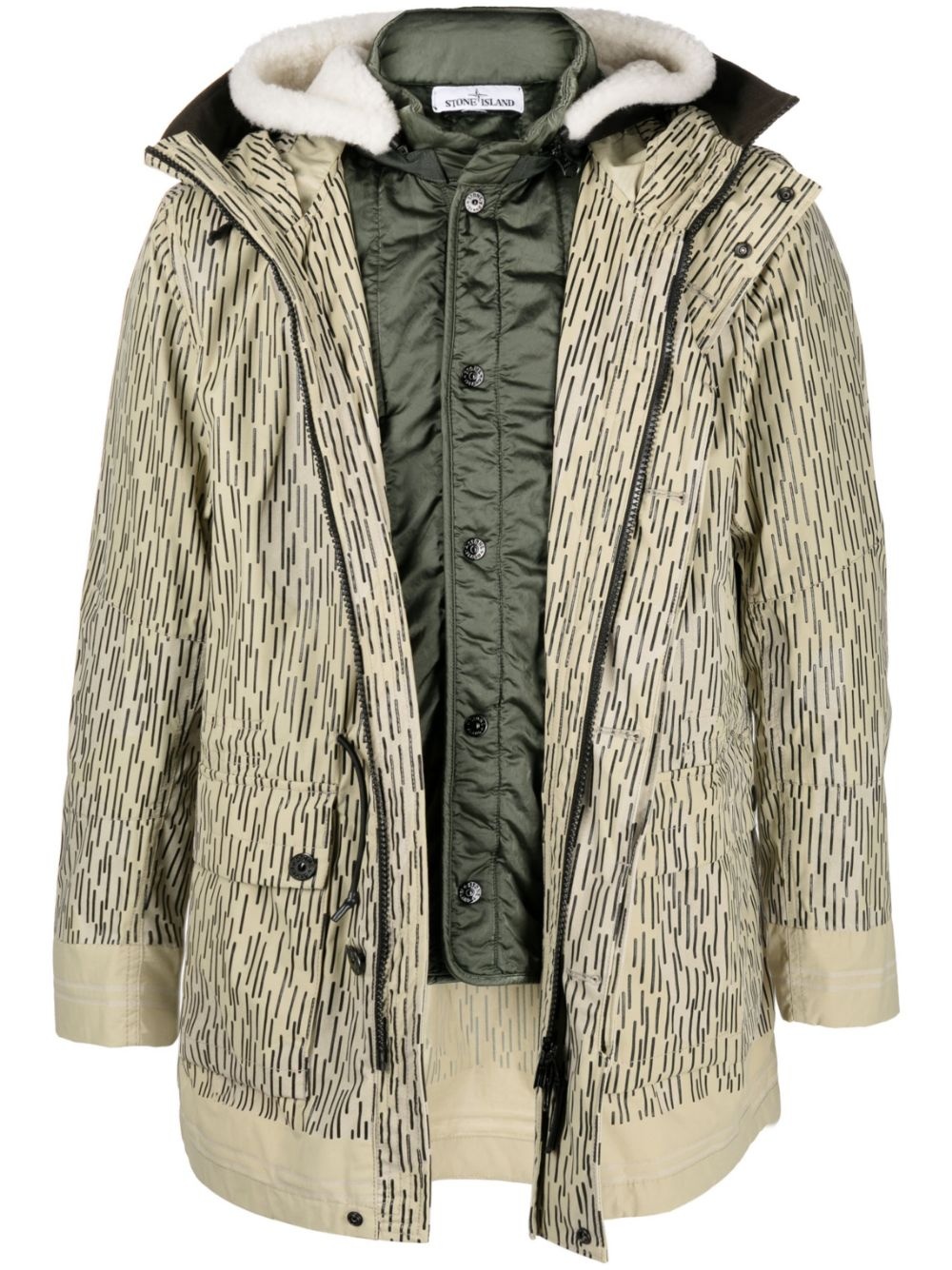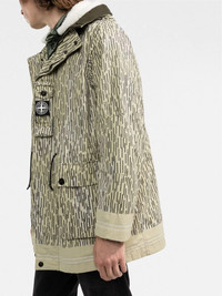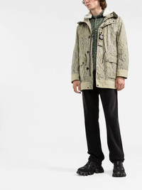 Rain Camo print layered parka beige/black/green Rain Camo print signature Compass motif layered design faux-shearling trim detachable hood concealed front press-stud fastening concealed front zip fastening front button fastening long sleeves front flap pockets drawstring waist straight hem Made in Italy Composition Outer: Polyamide 100% Lining: Polyester 100%, Polyamide 100% SIZE & FIT Model measurements Height 6 ft 2 in(1.88 m) Bust/Chest 37.79 in(96 cm) Hips 36.22 in(92 cm) Waist 31.1 in(79 cm) Measurement CHEST 44.09 in(112 cm) SLEEVE LENGTH 24.8 in(63 cm) Shoulder Width 18.89 in(48 cm) WAIST 45.66 in(116 cm) FittingInformation This piece fits true to size. We recommend you get your regular size Cut for a loose fit Made with a mid-weight non-stretch fabric Washing instructions Machine Wash