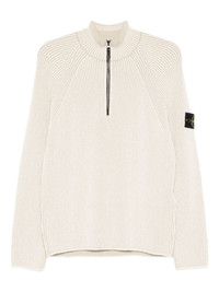 ribbed zip-neck sweater Highlights Imported Composition RWS Virgin Wool 57%, Cotton 35%, Polyamide 7%, Elastane 1% SIZE & FIT Model measurements Height 6 ft 1 in(1.85 m) Bust/Chest 35.82 in(91 cm) Hips 37.79 in(96 cm) Waist 29.13 in(74 cm)