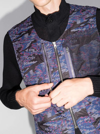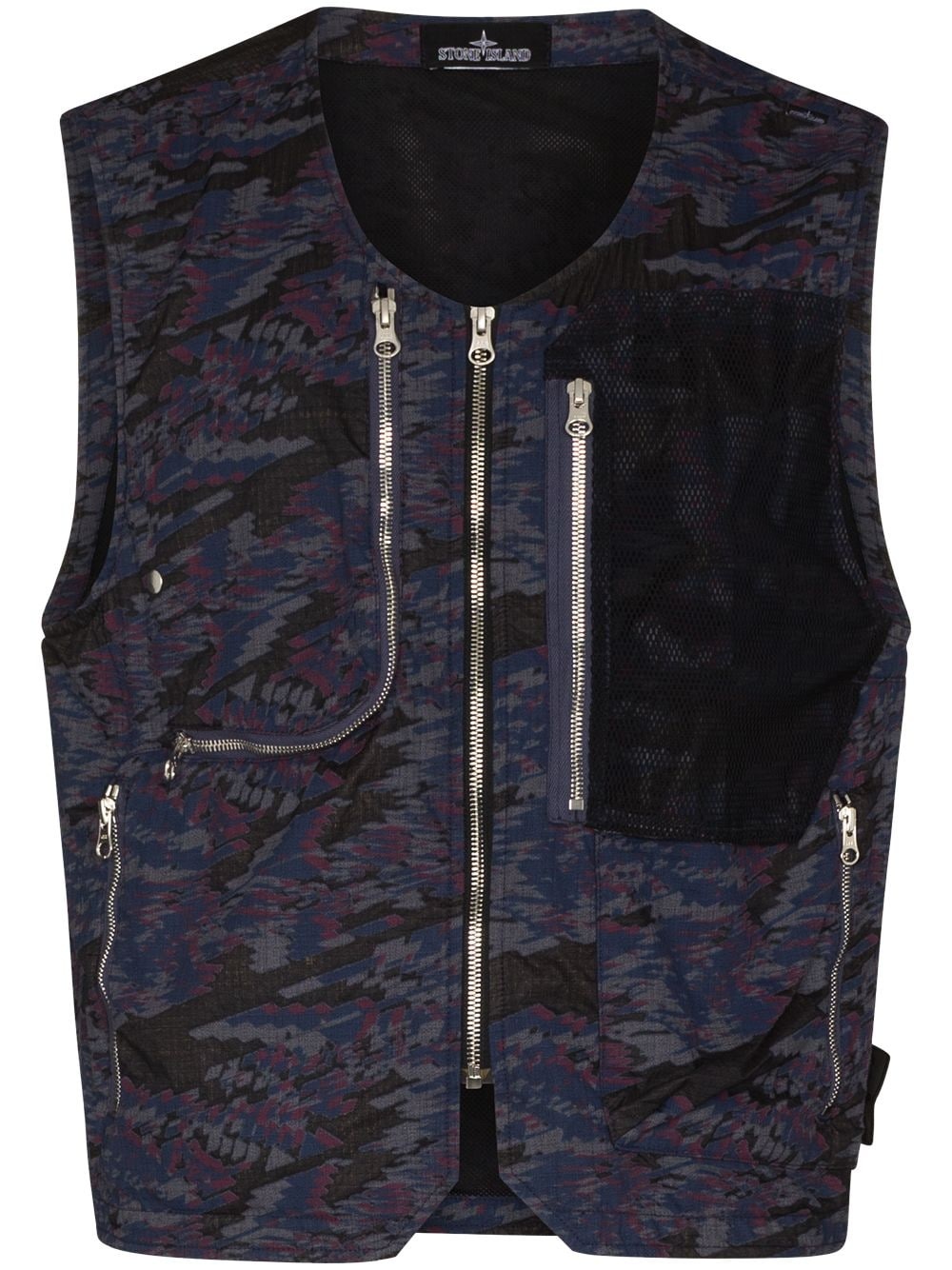abstract-print utility gilet If we were you, we would give up both the right and left arm (or sleeve) for this sleeveless gilet. With a beautiful abstract print, we believe this Stone Island Shadow Project piece is totally worth it. Made in Italy Composition Outer: Polyurethane Resin 100%, Cotton 66%, Polyamide 34% Lining: Polyamide 70%, Elastane 30% SIZE & FIT Model measurements Height 6 ft 2 in(1.87 m) Bust/Chest 36.41 in(92.5 cm) Hips 35.43 in(90 cm) Waist 29.52 in(75 cm) FittingInformation This piece fits true to size. We recommend you get your regular size Cut for a loose fit Made with a mid-weight non-stretch fabric Washing instructions Machine Wash