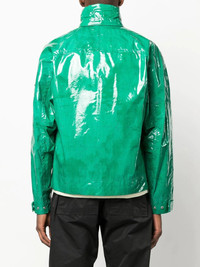 laminated feather-down biker jacket emerald green cotton laminated finish stand-up collar padded design down-feather filling long sleeves front button and zip fastening Made in Italy Composition Lining: Feather Down 100% Outer: Cotton 100%, Polyamide 100%, Polyurethane Resin 100% SIZE & FIT Model measurements Height 6 ft 2 in(1.88 m) Bust/Chest 36.61 in(93 cm) Hips 35.82 in(91 cm) Waist 27.95 in(71 cm) Measurement CHEST 31.49 in(80 cm) SLEEVE LENGTH 28.74 in(73 cm) Shoulder Width 20.86 in(53 cm) FittingInformation This piece fits true to size. We recommend you get your regular size Cut for a loose fit Made with a mid-weight non-stretch fabric Washing instructions Machine Wash