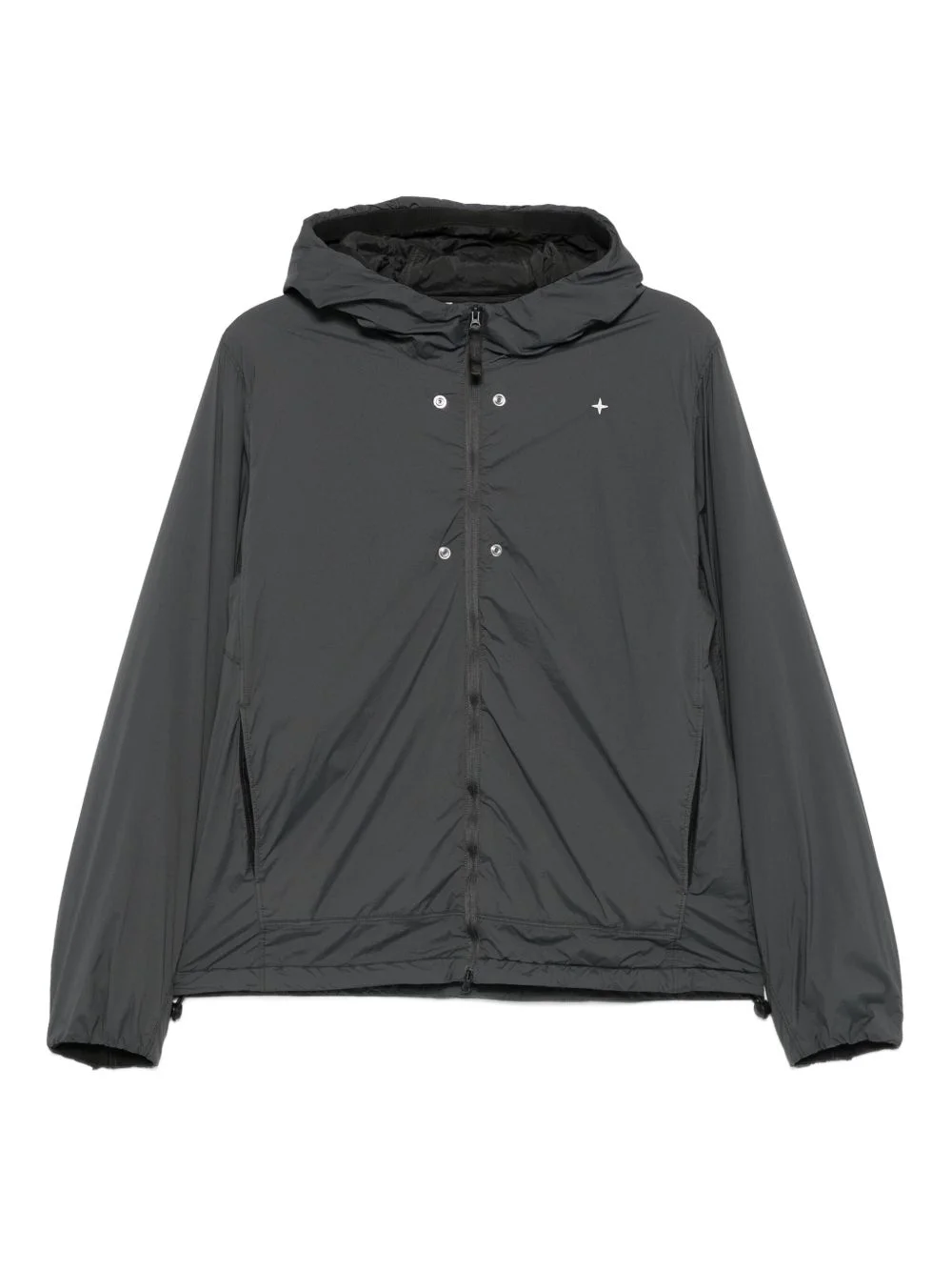 Stellina hooded jacket Highlights - Grey - Front two-way zip fastening - Side insect pockets Imported Composition Outer: Polyurethane Resin 100%, Polyamide 89%, Elastane 11% Lining: Polyester 100%, Polyamide 94%, Elastane 6% SIZE & FIT Model measurements Height 6 ft 1 in(1.85 m) Bust/Chest 35.82 in(91 cm) Hips 37.79 in(96 cm) Waist 29.13 in(74 cm) Washing instructions Machine Wash