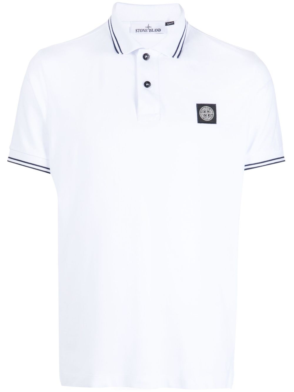 stripe-trim pique polo shirt Highlights - White/navy blue - Stretch-cotton - Pique weave - Signature compass motif - Contrasting stripe trim - Polo collar - Short front button fastening - Short sleeves - Short side slits - Straight hem Made in Italy Composition Body: Cotton 95%, Elastane 5% SIZE & FIT Model measurements Height 6 ft 2 in(1.87 m) Bust/Chest 34.25 in(87 cm) Hips 36.22 in(92 cm) Waist 29.52 in(75 cm) Measurement CHEST 46.06 in(117 cm) LENGTH 29.13 in(74 cm) SLEEVE LENGTH 18.11 in(46 cm) Shoulder Width 18.3 in(46.5 cm) FittingInformation Designed for a loose fit, this polo shirt offers additional room throughout Made from a midweight stretch fabric, this piece offers elasticity and flexibility when worn This piece fits true to size – take your usual size Washing instructions Machine Wash