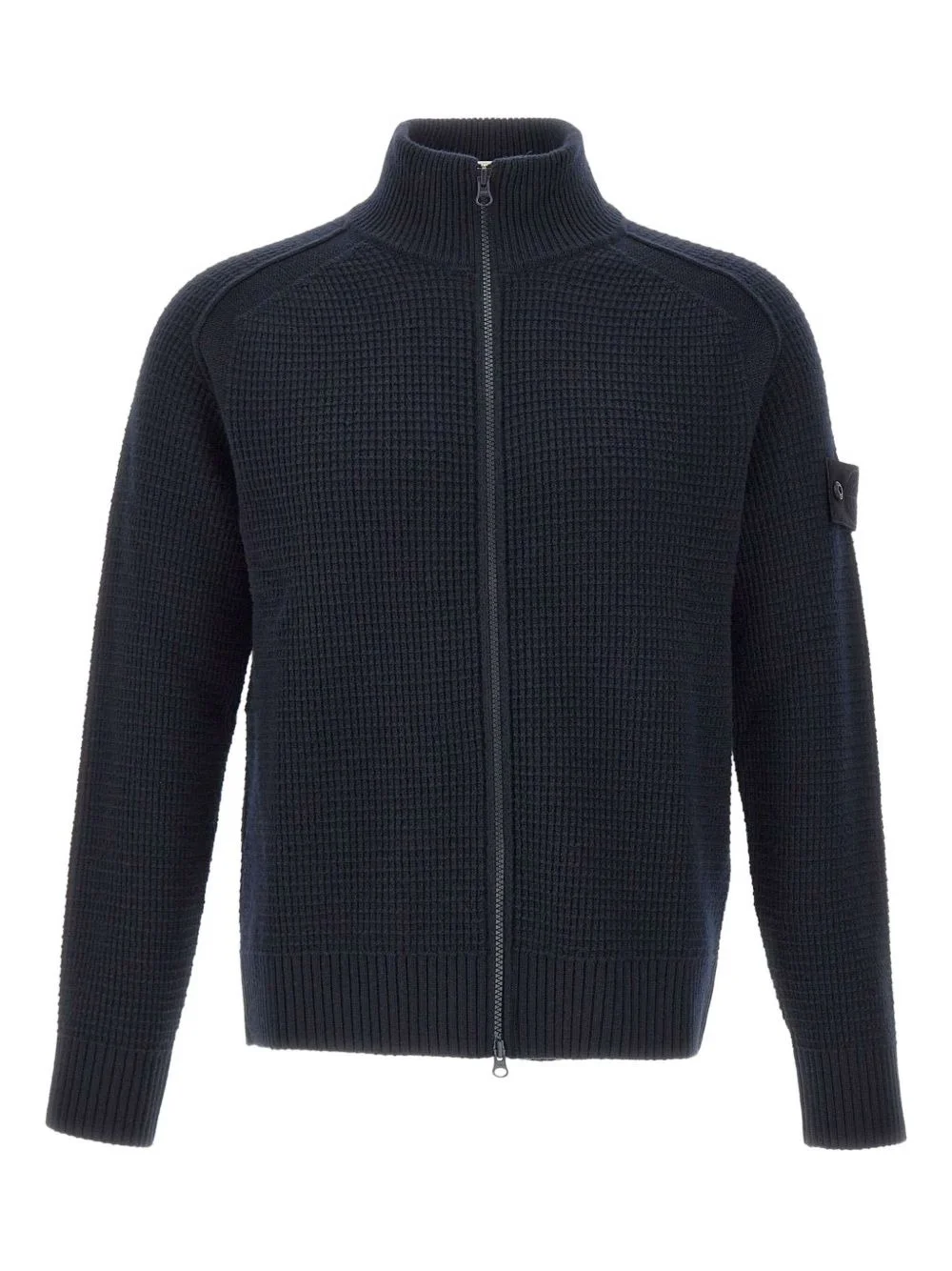 textured-weave zip-up cardigan Highlights - Dark blue - Textured weave - Two-way zip fastening - Stand-up collar - Ribbed edges - Raglan sleeves Imported Composition Wool 100% Washing instructions Read Manufacturer Guidelines