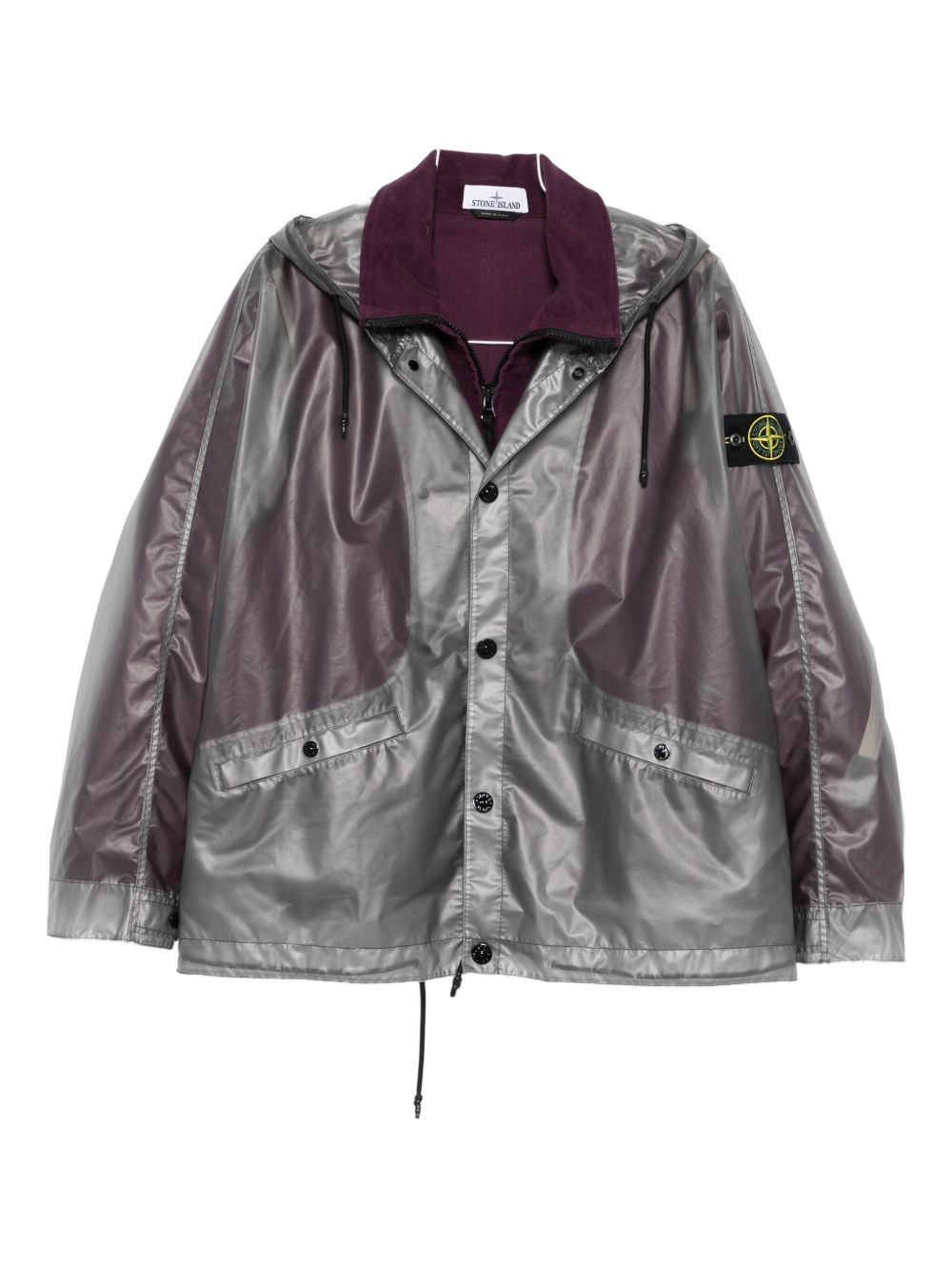 translucent layered jacket Highlights - Grey and purple - Front press-stud and zip fastening - Detachable panels Made in Italy Composition Outer: Polyurethane 100% Lining: Cotton 100% SIZE & FIT Model measurements Height 6 ft 1 in(1.85 m) Bust/Chest 35.82 in(91 cm) Hips 37.79 in(96 cm) Waist 29.13 in(74 cm) Washing instructions Machine Wash