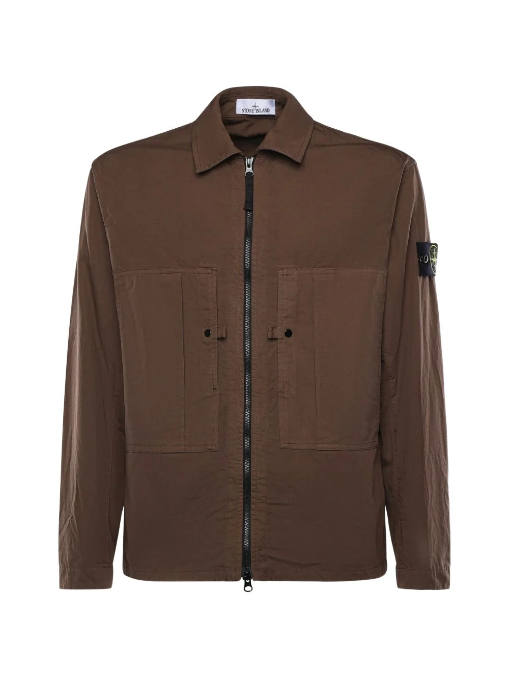 zip-fastening flap-pocket shirt jacket Highlights - Brown - Flap pockets - Logo patch - Zip fastening - Long sleeves - Buttoned cuffs Imported Composition Cotton 99% Washing instructions Read Manufacturer Guidelines