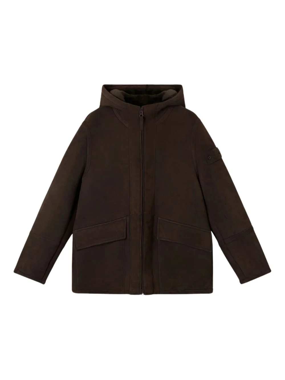 zip-up hooded jacket Highlights - Brown - Front zip fastening - Side flap pockets - Long sleeves - Classic hood Made in Italy Composition Sheepskin 100% Washing instructions Specialist Cleaning