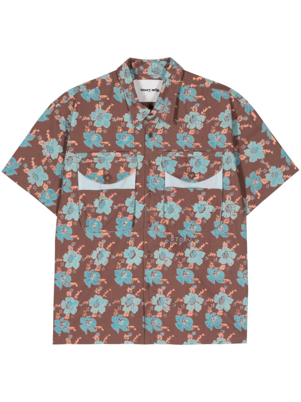 floral-print cotton shirt Highlights - Brown/blue - Organic cotton - Floral print - Embroidered logo at the chest - Two front patch pockets - Pointed flat collar - Short sleeves - Front button fastening - Straight hem Imported Composition Organic Cotton 100%