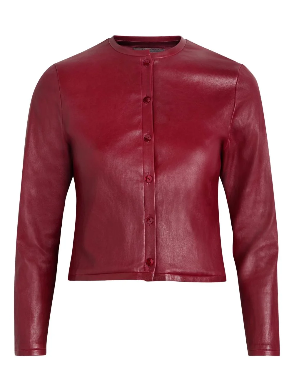 Astrid 25 buttoned leather jacket Highlights - Red - Round neck - Front button fastening - Long sleeves - Short length Imported Composition Outer: Lamb Skin 100% Lining: Cotton 97%, Lyocell 2%, Elastane 1% Washing instructions Read Manufacturer Guidelines