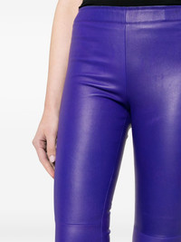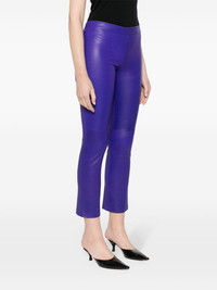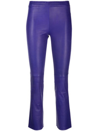 cropped leather trousers Highlights - Dark purple - Stretch-cotton - Elasticated waistband - High-waisted - Cropped leg - Slim cut - Straight hem Imported Composition Outer: Calf Leather 100% Lining: Cotton 97%, Lyocell 2%, Elastane 1% SIZE & FIT Model measurements Height 5 ft 10 in(1.78 m) Bust/Chest 30.7 in(78 cm) Hips 36.61 in(93 cm) Waist 24.8 in(63 cm) FittingInformation Designed for a close fit throughout The elasticated waist allows for a comfortable fit Soft leather has a supple and smooth construction offering some flexibility This piece fits true to size – take your usual size Washing instructions Specialist Cleaning