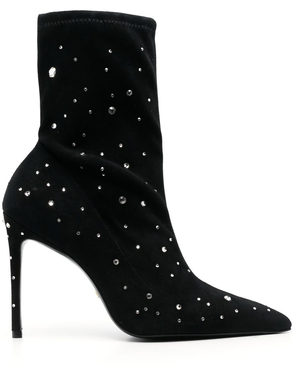 115mm crystal-embellished ankle boots jet black calf leather/calf suede ankle length crystal embellishment pointed toe branded insole 115mm high heel Imported Composition Suede 100% SIZE & FIT Measurement CIRCUMFERENCE 9.84 in(25 cm) HEEL 4.52 in(11.5 cm)