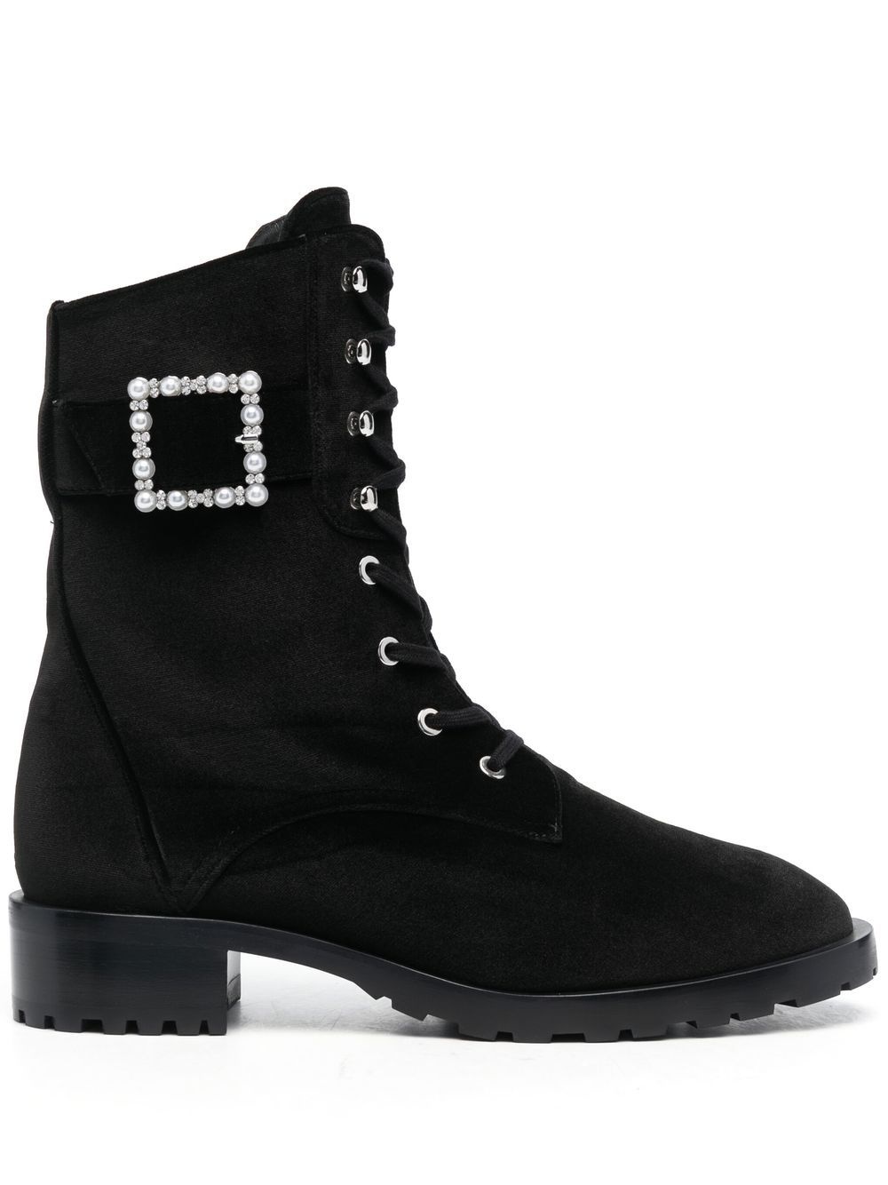 40mm buckle-fastening lace-up boots jet black calf leather-blend eyelet detailing front lace-up fastening round toe 40mm mid heel Imported Composition Lining: Calf Leather 100% Sole: Rubber 100% Outer: Fabric 100% SIZE & FIT Measurement HEEL 1.57 in(4 cm) HEIGHT 7.48 in(19 cm) Sole height 0.78 in(2 cm)