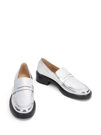 40mm Palmer Bold loafers Highlights - Silver-tone - Calf leather - Metallic finish - Slip-on style - Low block heel - Penny slot - Round toe - Branded leather insole - Rubber sole Imported Composition Leather 100% SIZE & FIT Measurement HEIGHT 1.57 in(4 cm)