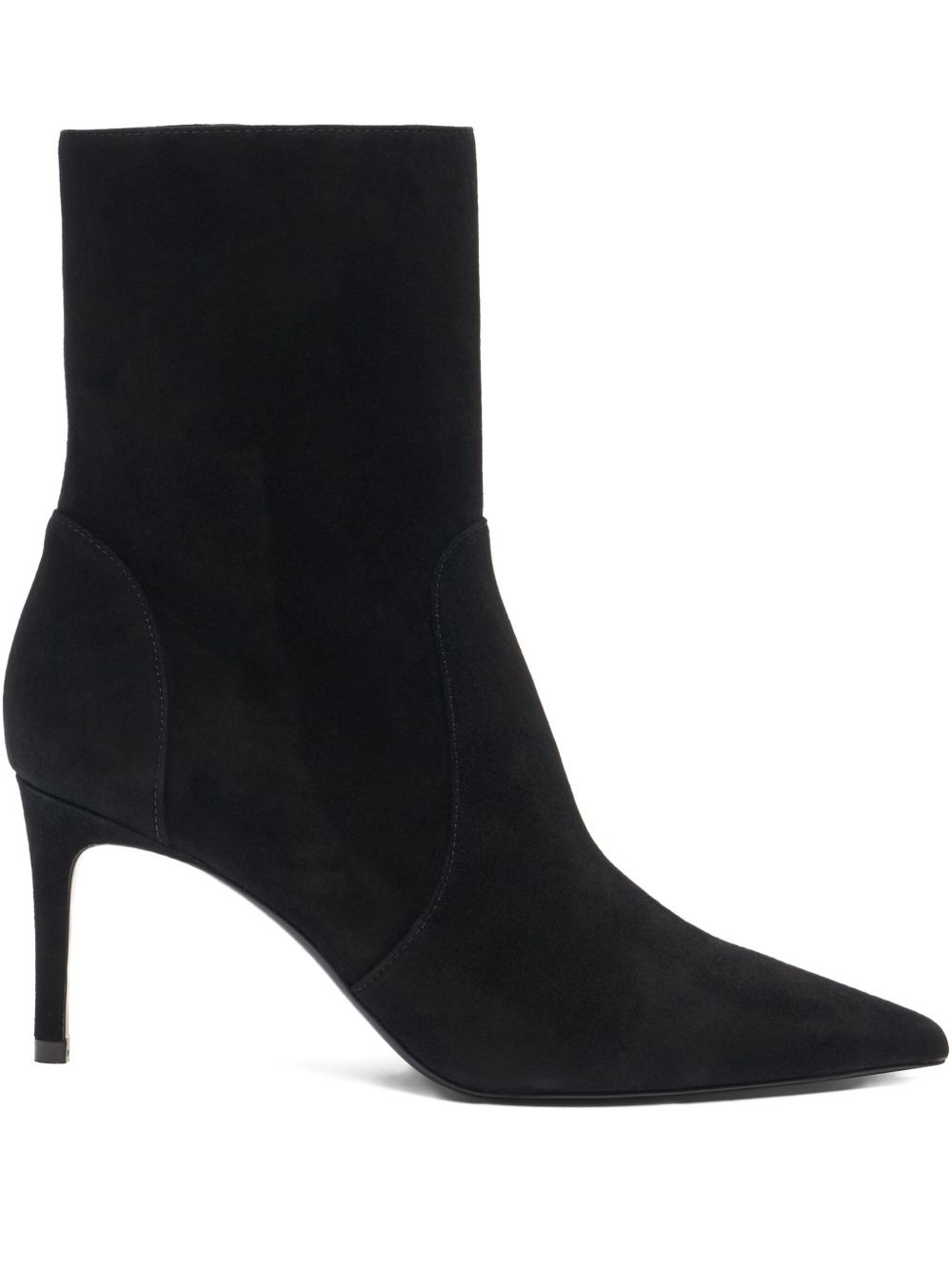 75mm Stuart Power zip-detail pointed-toe boots Highlights - Black - Suede upper - Pointed toe - Stiletto heel - Side zip fastening - Ankle height Imported Composition Sole: Calf Leather 100% Outer: Suede 100% Lining: Calf Leather 100% SIZE & FIT Measurement HEEL 2.95 in(7.5 cm)