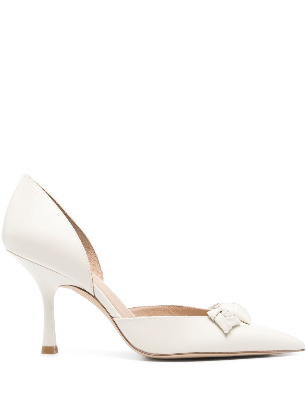 90mm leather pumps Highlights - Ecru - Branded leather insole - High heel - Leather outsole - Floral applique Imported Composition Leather 100% SIZE & FIT Measurement HEEL 3.54 in(9 cm)