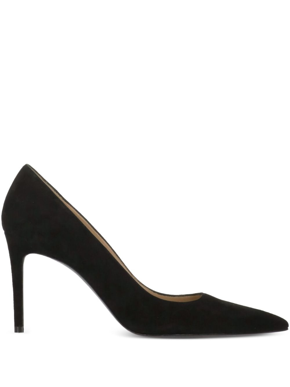 90mm Stuart Power pumps Highlights - Black - Suede - Pointed toe - Leather sole - 90mm stiletto heel Imported Composition Outer: Goat Skin 100% Sole: Goat Skin 100% Lining: Goat Skin 100% SIZE & FIT Measurement HEEL 3.54 in(9 cm)