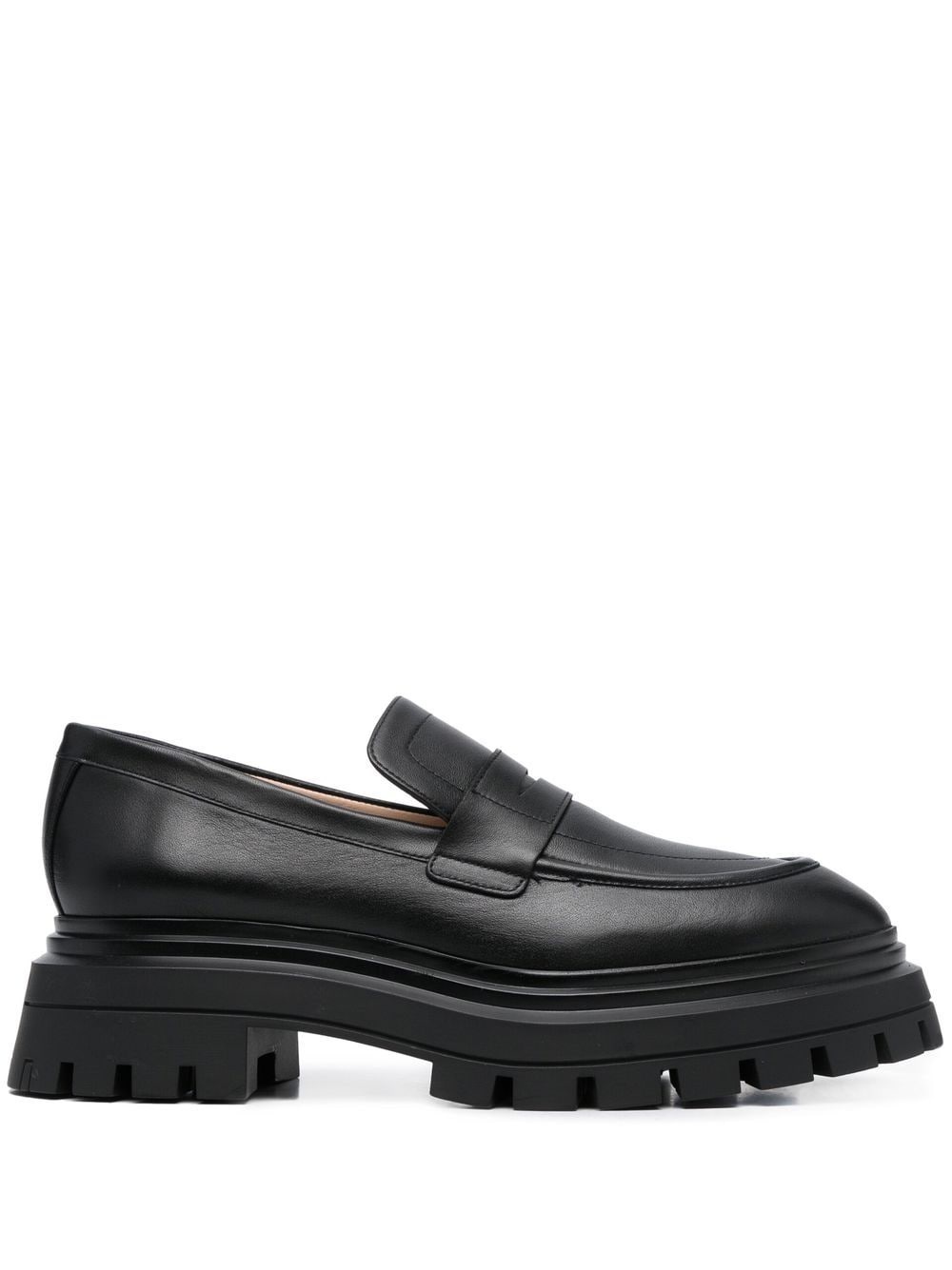 almond-toe leather loafers black calf leather leather lining branded insole almond toe slip-on style ridged rubber sole mid heel Imported Composition Leather 100% SIZE & FIT FittingInformation This piece fits large – take one size down Measurement HEEL 1.96 in(5 cm) PLATFORM 1.57 in(4 cm)