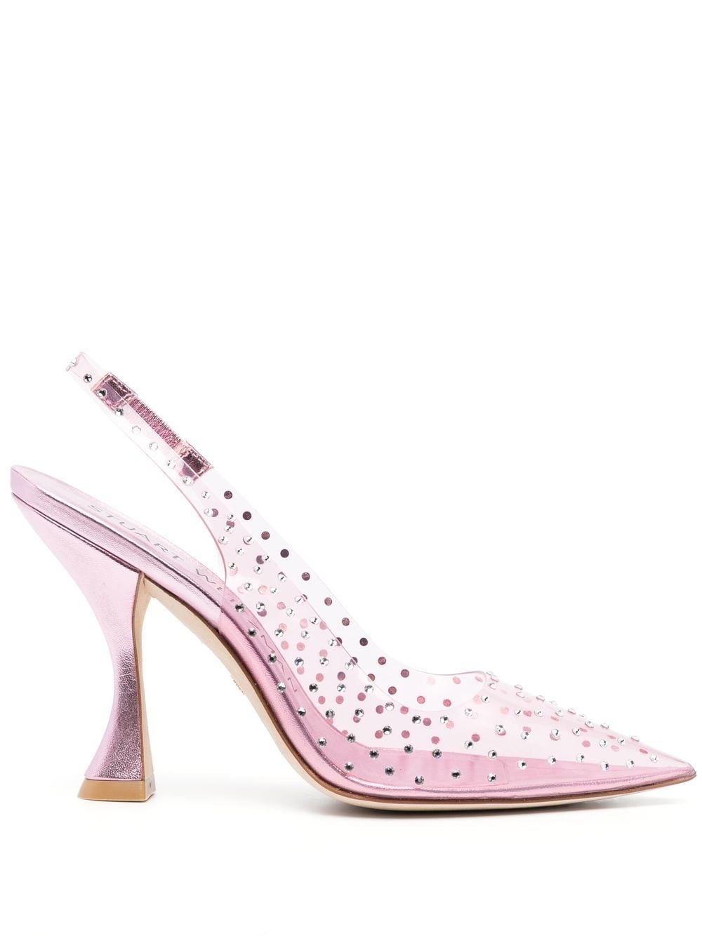 crystal-embellished transparent pumps light pink transparent design high cone heel slingback strap pointed toe crystal embellishment Imported Composition Other fibres 100% SIZE & FIT Measurement HEEL 4.72 in(12 cm)