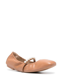 Goldie ballerina shoes Highlights - Cognac brown - Calf leather - Grained texture - Square toe - Faux-pearl embellishment - Branded leather insole - Leather lining - Low stacked heel - Rubber sole - Slip-on style - This piece comes complete with a protective dust bag. Imported Composition Leather 100% SIZE & FIT Measurement HEEL 0.59 in(1.5 cm)