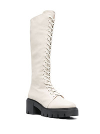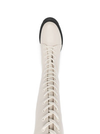 lace-up chunky boots ivory white calf leather chunky rubber sole low stacked heel front lace-up fastening side zip fastening round toe Imported Composition Leather 100% SIZE & FIT Measurement HEEL 3.14 in(8 cm) HEIGHT 14.56 in(37 cm) Sole height 1.37 in(3.5 cm)