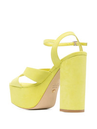 Miami 140mm platform sandals green calf leather calf suede crossover strap detail open toe buckle-fastening ankle strap 140mm high block heel branded insole platform sole Imported Composition Suede 100% SIZE & FIT Measurement HEEL 5.11 in(13 cm) PLATFORM 1.96 in(5 cm)