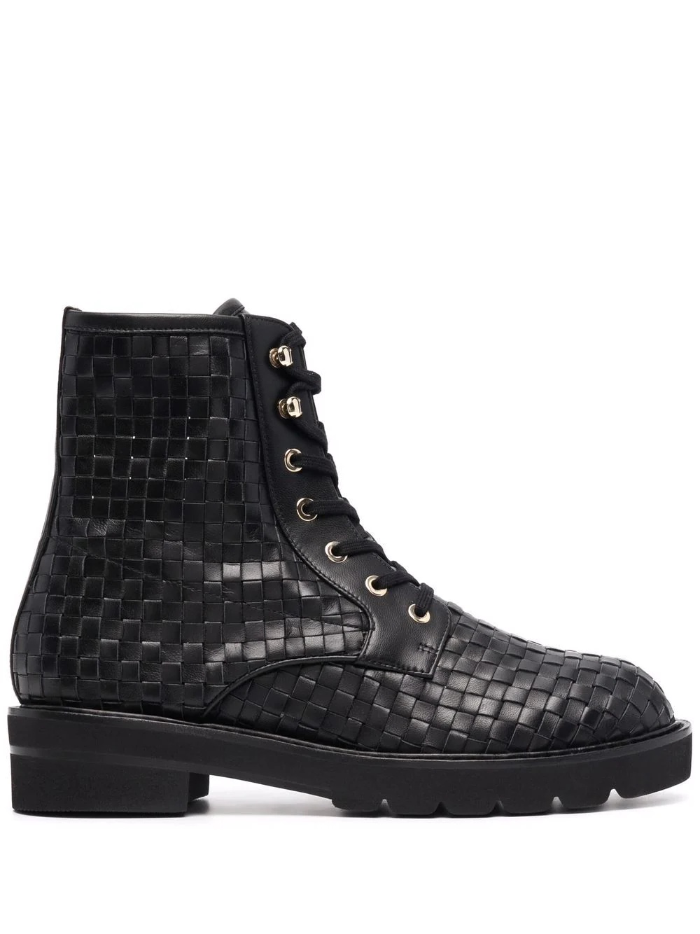 Mila ankle boots Black leather/rubber Mila ankle boots from STUART WEITZMAN featuring front lace-up fastening, round toe, flat sole and ankle-length. Imported Composition Leather 100% SIZE & FIT Measurement HEEL 1.57 in(4 cm) HEIGHT 5.9 in(15 cm) Sole height 0.98 in(2.5 cm)