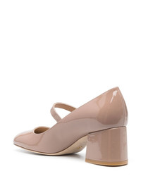 MJ 65mm leather pumps Highlights - Blush pink - Calf leather - Patent finish - Round toe - Front buckle fastening - Branded leather insole - Mid block heel Imported Composition Outer: Patent Calf Leather 100% Lining: Calf Leather 100% Sole: Rubber 100%, Calf Leather 100% SIZE & FIT Measurement HEEL 2.55 in(6.5 cm)