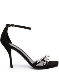 Nudist Vow 100mm suede sandals Highlights - Jet black - Calf suede - Crystal embellishment - Square open toe - Buckle-fastening ankle strap - Branded leather insole - 100mm high stiletto heel - Leather sole Imported Composition Suede 100% SIZE & FIT Measurement CIRCUMFERENCE 9.44 in(24 cm) HEEL 4.52 in(11.5 cm) HEIGHT 2.75 in(7 cm)