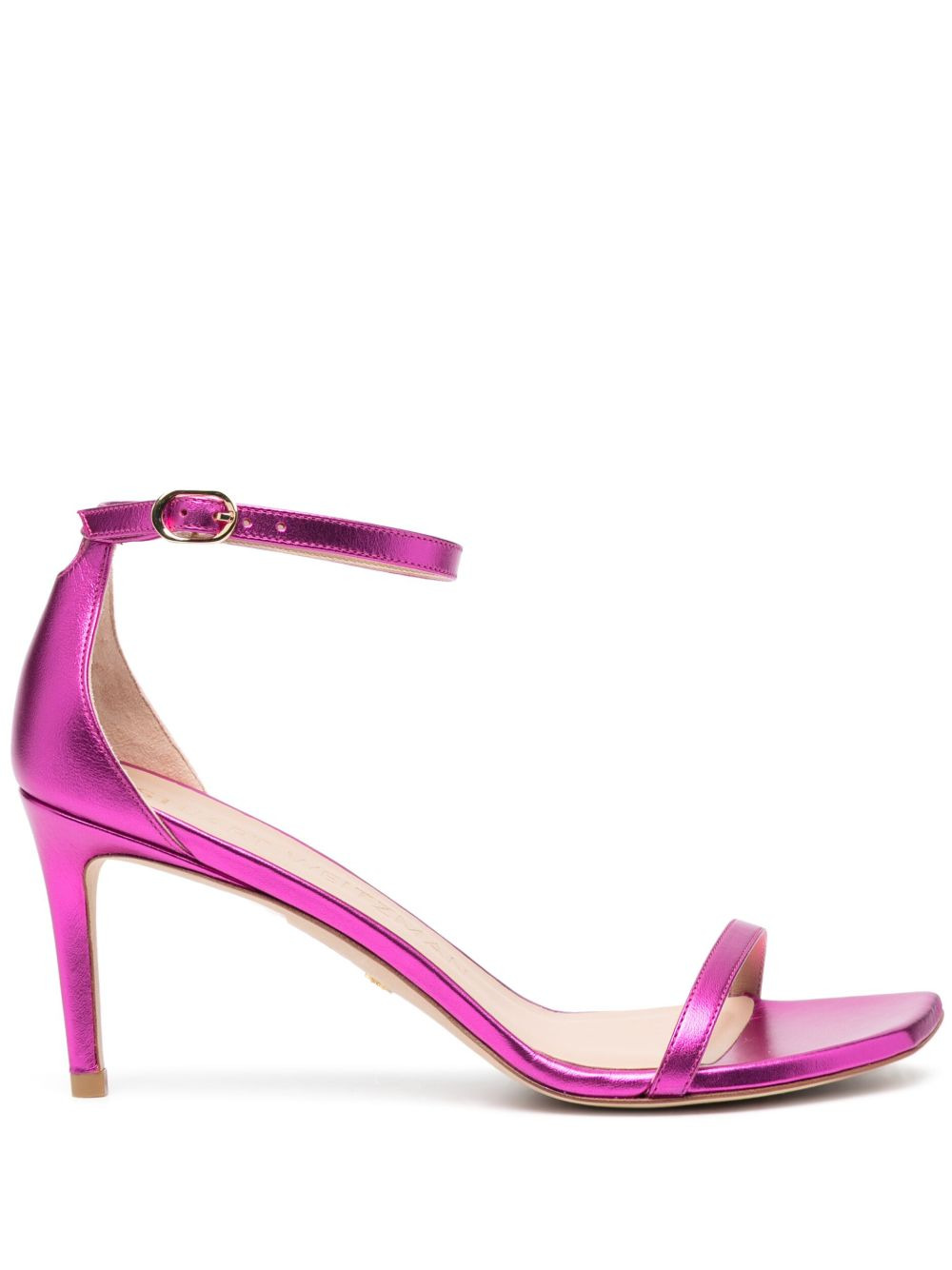 Nudistcurve 75mm heel sandals Stuart Weitzman presents the iconic Nudistcurve sandals in a bold metallic pink design for SS23, elevating the sleek silhouette. Highlights - Fuchsia pink - Calf leather - Metallic finish - Open toe - Single toe strap - Buckle-fastening ankle strap - High stiletto heel Imported Composition Outer: Calf Leather 100% Lining: Calf Leather 100% Sole: Calf Leather 100% SIZE & FIT Measurement HEEL 3.34 in(8.5 cm) HEIGHT 2.75 in(7 cm) Sole height 0.39 in(1 cm)