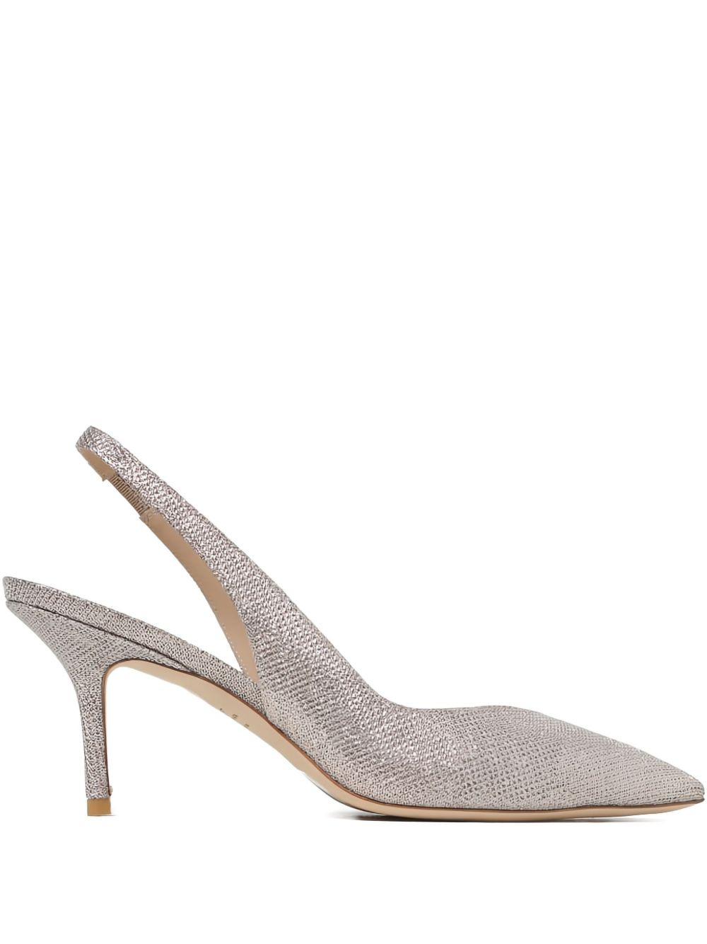 pointed slingback pumps Highlights - Silver - Pointed toe - Slingback strap - Stiletto heel Imported Composition Outer: Calf Leather 100% Sole: Calf Leather 100%