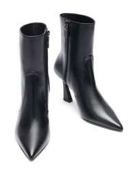 90mm leather ankle boots Highlights - Black - Calf leather - Smooth grain - Side zip fastening - 90mm high heel - Ankle-length - Pointed toe - Branded leather insole - Rubber sole - This piece comes complete with a protective dust bag. Imported Composition Lining: Calf Leather 100% Outer: Calf Leather 100% Sole: Calf Leather 100%, Rubber 100% SIZE & FIT Measurement HEEL 3.34 in(8.5 cm)