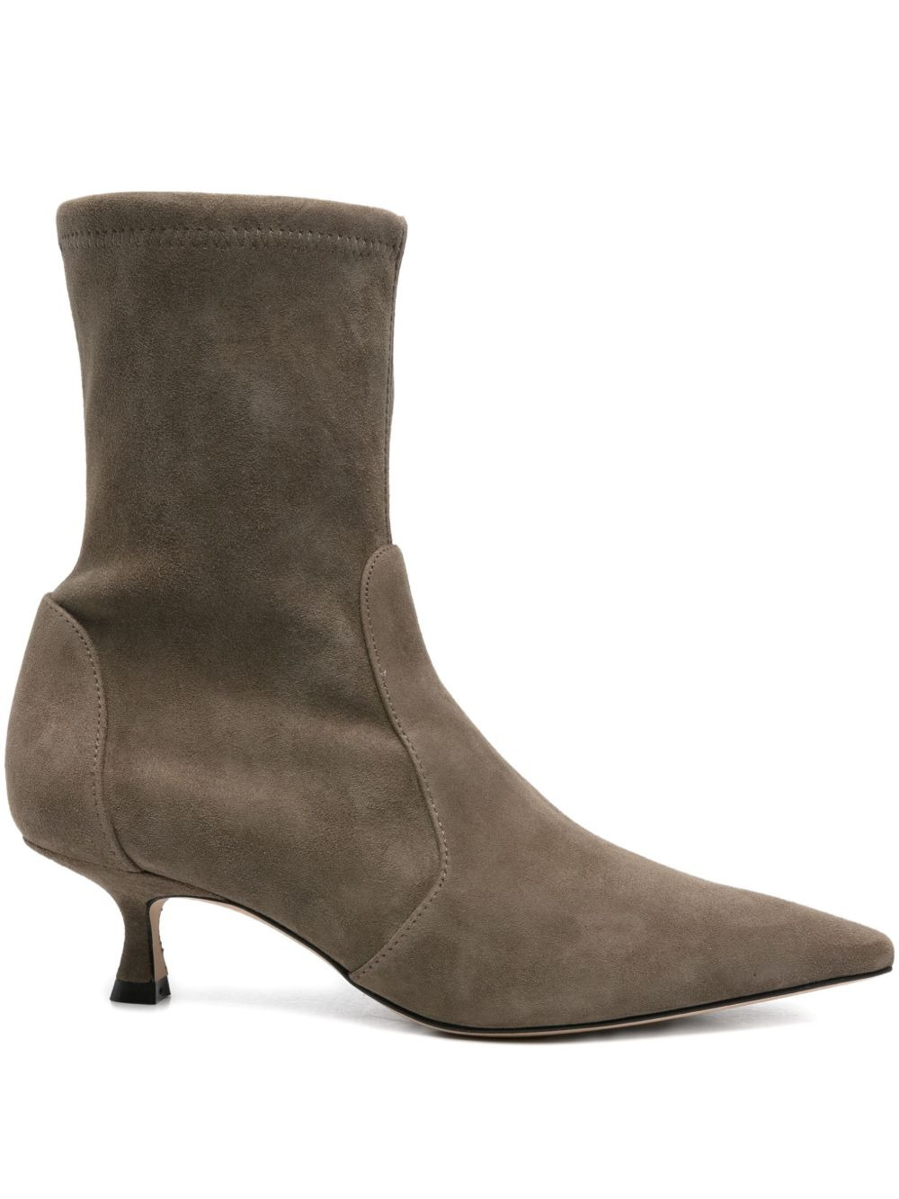 pointed-toe sock boots Highlights - Smoky taupe - Suede leather upper - Pointed toe - Sock-like fit - Kitten heel - Leather sole Imported Composition Lining: Calf Leather 100%, Fabric 100% Outer: Calf Suede 100% Sole: Rubber 100% SIZE & FIT Measurement HEEL 1.96 in(5 cm)