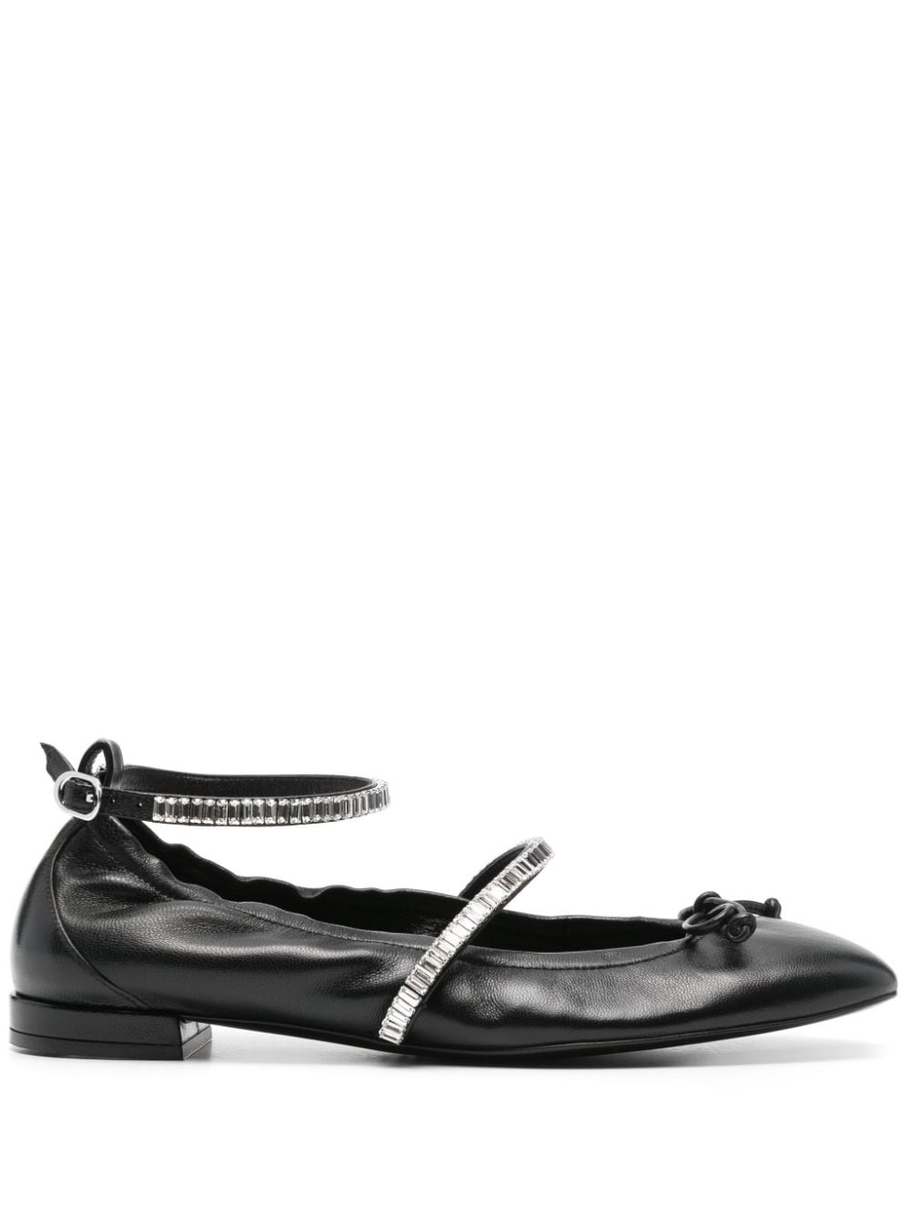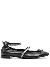 Stefanie ballet flats Highlights - Black - Calf leather - Smooth grain - Baguette cut crystal embellished straps - Knot detailing - Double-strap design - Square toe - Buckle-fastening ankle strap - Branded insole - Stacked heel - Leather and rubber sole - This piece comes complete with a protective dust bag. Imported Composition Outer: Patent Calf Leather 100%, glass 100% Lining: Calf Leather 100% Sole: Calf Leather 100%, Rubber 100% SIZE & FIT Measurement HEEL 0.98 in(2.5 cm)