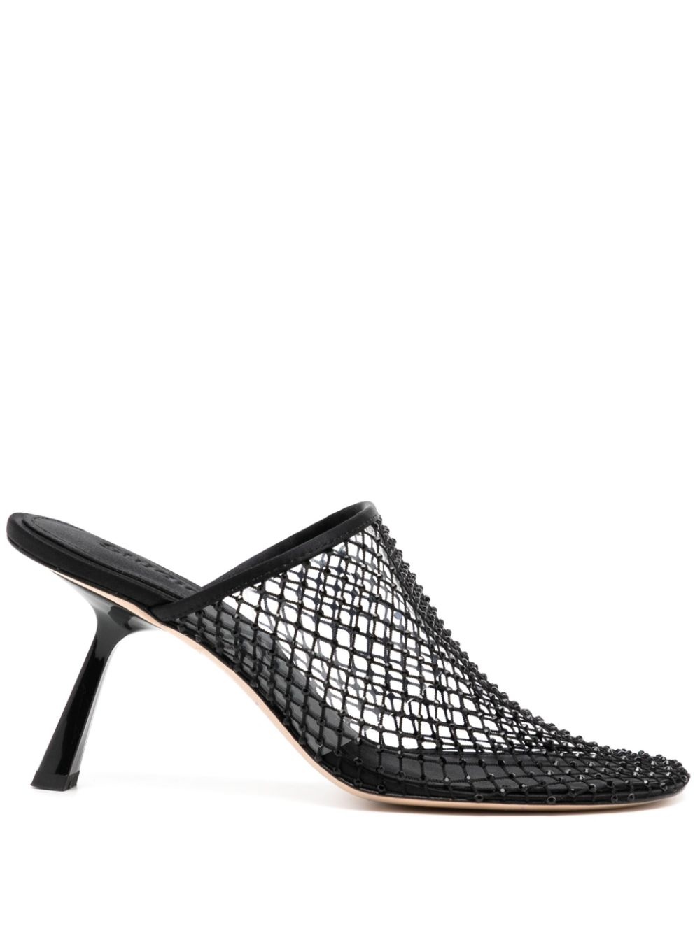 80mm Dolly mules Highlights - Black - Crystal embellishment - Mesh panelling - Slip-on style - Round toe - Branded insole - Lacquered finish heels - 80mm stiletto heel Imported Composition Outer: Polyester 100% Sole: Calf Leather 100% Lining: Polyester 100% SIZE & FIT Measurement HEEL 2.75 in(7 cm)