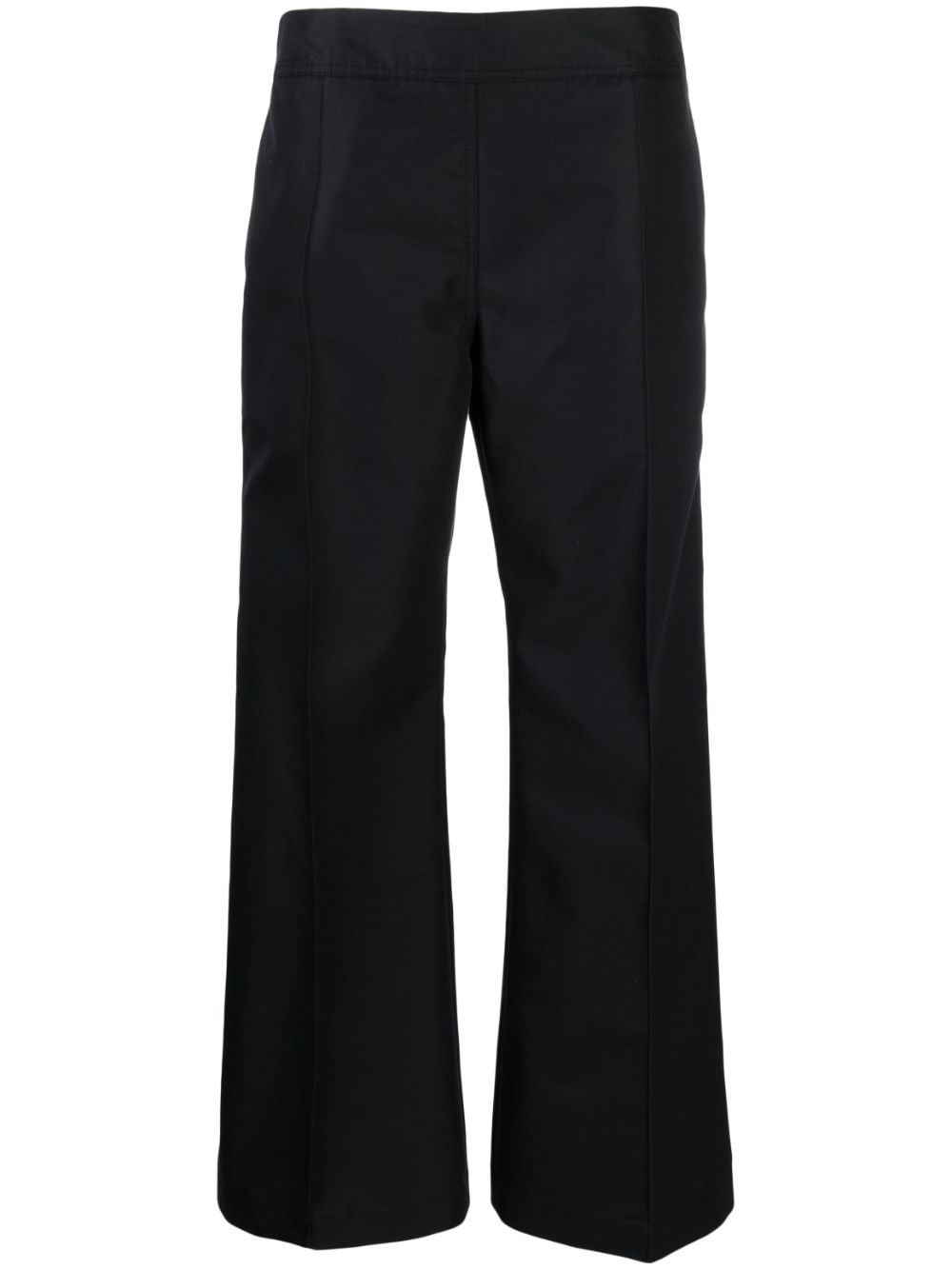 Acapulco flared trousers Highlights - Black - Cotton blend - Flared - Low-rise - Pressed crease - Side button and zip fastening - Wide leg - Rear flap pocket Imported Composition Cotton 64%, Polyester 36% SIZE & FIT Model measurements Height 5 ft 10 in(1.78 m) Bust/Chest 33.07 in(84 cm) Hips 35.82 in(91 cm) Waist 26.96 in(68.5 cm) FittingInformation Designed for a straight-leg fit, these trousers allow for a close fit at the waist and an unrestricted, comfortable fit over the leg Made from a midweight non-stretch fabric This piece fits true to size – take your usual size