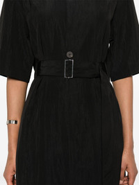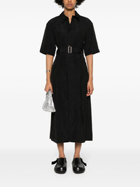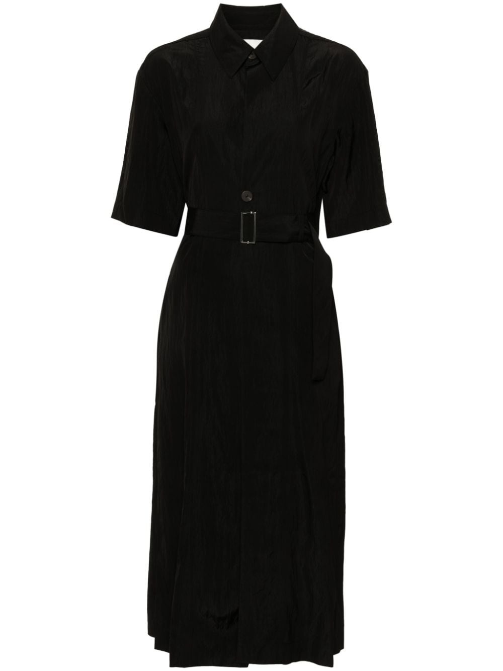 Arden midi shirt dress Highlights - Black - Crinkled finish - Classic collar - Half-length sleeves - Detachable and adjustable waist belt - Two side inset pockets - Straight hem - Mid-length - Front button placket Imported Composition Viscose 89%, Polyamide 11% SIZE & FIT Model measurements Height 5 ft 10 in(1.77 m) Bust/Chest 33.07 in(84 cm) Hips 37 in(94 cm) Waist 24.8 in(63 cm) FittingInformation Designed to be unstructured, offering a loose fit throughout The belt offers adjustability for fitted preferences Made from a midweight non-stretch fabric This piece fits true to size – take your usual size