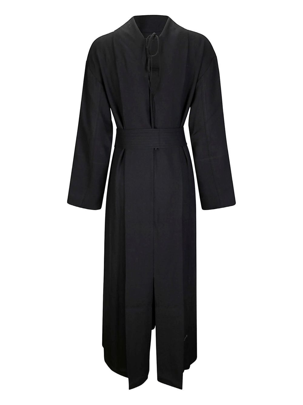 belted midi dress Highlights - Black - Belted waist - High neck - Long sleeves Imported Composition Triacetate 100%