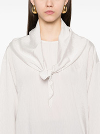 Bute blouse Highlights - White - Single rear button fastening - Side slit - Attached scarf - Pinstripe pattern Imported Composition Modal 81%, Polyamide 17%, Cupro 2% SIZE & FIT Model measurements Height 5 ft 10 in(1.78 m) Bust/Chest 33.85 in(86 cm) Hips 36.61 in(93 cm) Waist 26.77 in(68 cm) FittingInformation Designed to be unstructured, offering a loose fit throughout Made from a midweight non-stretch fabric