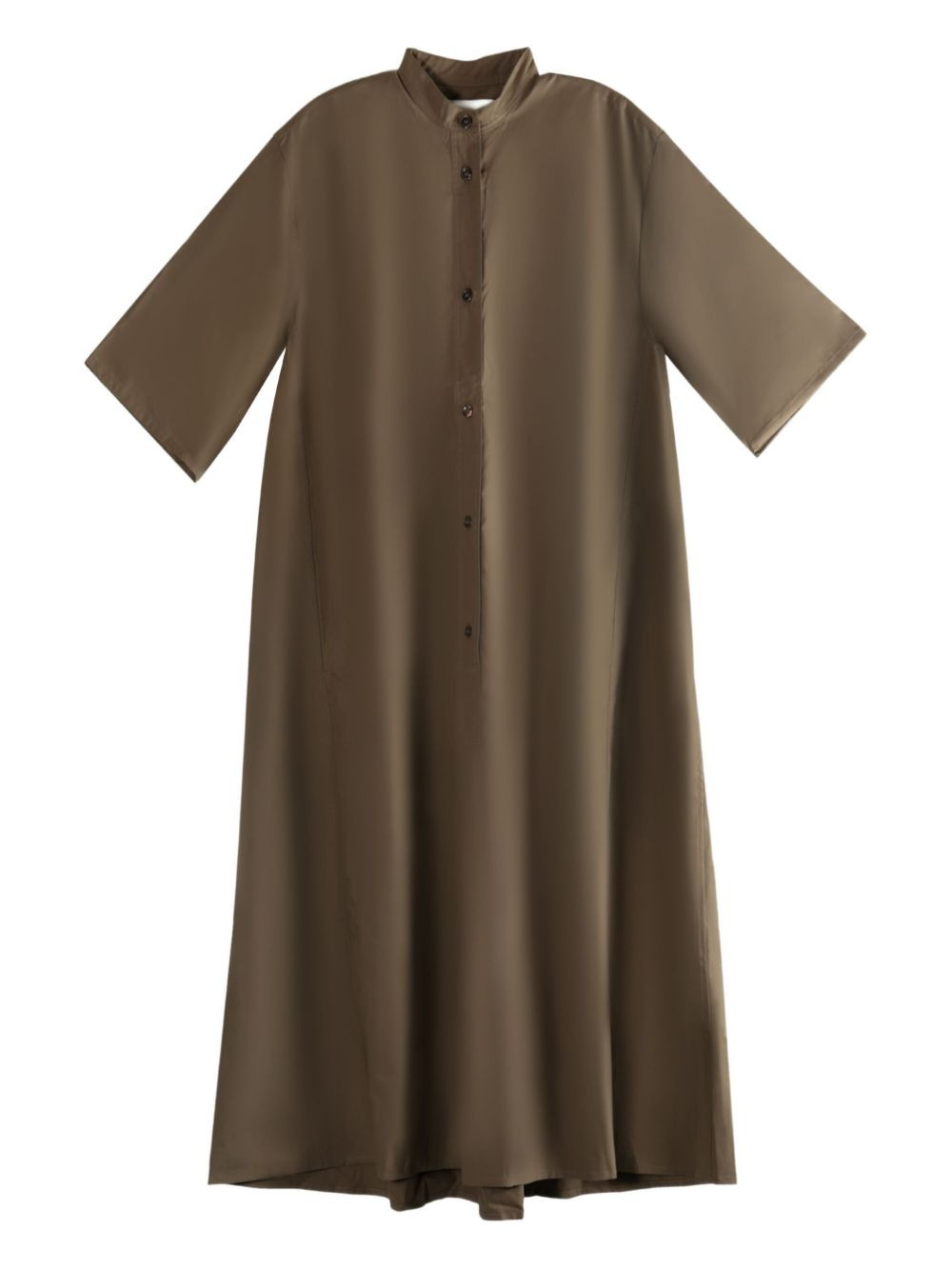 button-front midi shirt dress Highlights - Olive brown - Short sleeves - Collared neckline - Centre-front button fastening - Cotton Imported Composition Cotton 100% Washing instructions Read Manufacturer Guidelines