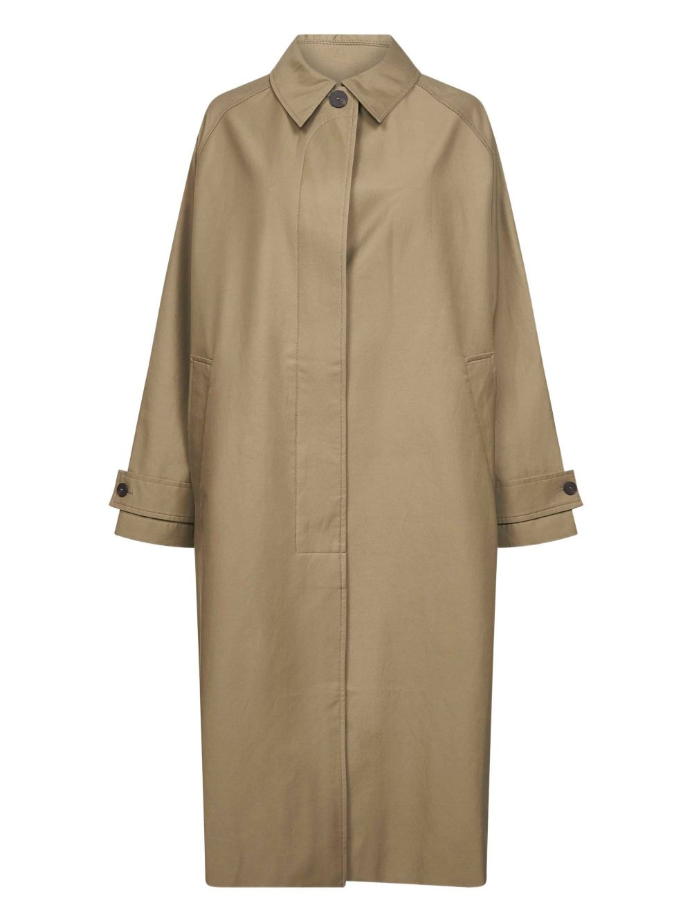 buttoned cotton-blend coat Highlights - Beige - Button fastening - Classic collar - Raglan sleeves - Side welt pockets - Buttoned adjustable cuffs - Central slit at back Imported Composition Cotton 59%, Polyamide 41% Washing instructions Read Manufacturer Guidelines