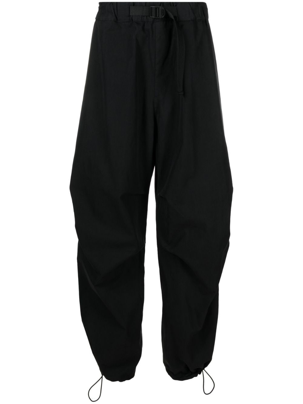 Caro belted wide-leg trousers These blue Caro trousers from Studio Nicholson embody a versatile and practical style. The four-pleated knee adds dimension to the leg while an adjustable webbing belt ensures a customisable fit. Highlights - Darkest navy blue - Cotton blend - Technical jersey - Detachable and adjustable waist belt - Elasticated waistband - Two side slit pockets - Pleated knees - Two rear patch pockets - Wide leg - Elasticated-drawstring at the ankles Imported Composition Cotton 75%, Polyamide 25% SIZE & FIT Model measurements Height 6 ft 1 in(1.85 m) Bust/Chest 38.58 in(98 cm) Hips 37 in(94 cm) Waist 30.31 in(77 cm) FittingInformation Designed for a relaxed straight leg, allowing a comfortable and loose fit over the leg The internal drawstring at the hem allows for fitted preferences at the ankle Made from a midweight non-stretch fabric This piece fits true to size – take your usual size Washing instructions Dry Clean Only