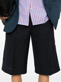 City shorts Highlights - Midnight blue - Wool - Interlock twill weave - Pressed crease - Mid-rise - Front button and zip fastening - Two side slash pockets - Two rear welt pockets - Straight leg - Below-knee length Imported Composition Lining: Viscose 100% Outer: Wool 100% SIZE & FIT Model measurements Height 5 ft 9 in(1.76 m) Bust/Chest 31.88 in(81 cm) Hips 35.43 in(90 cm) Waist 24.8 in(63 cm) FittingInformation Designed with a voluminous wide-leg fit Made from a midweight non-stretch fabric This piece fits true to size – take your usual size