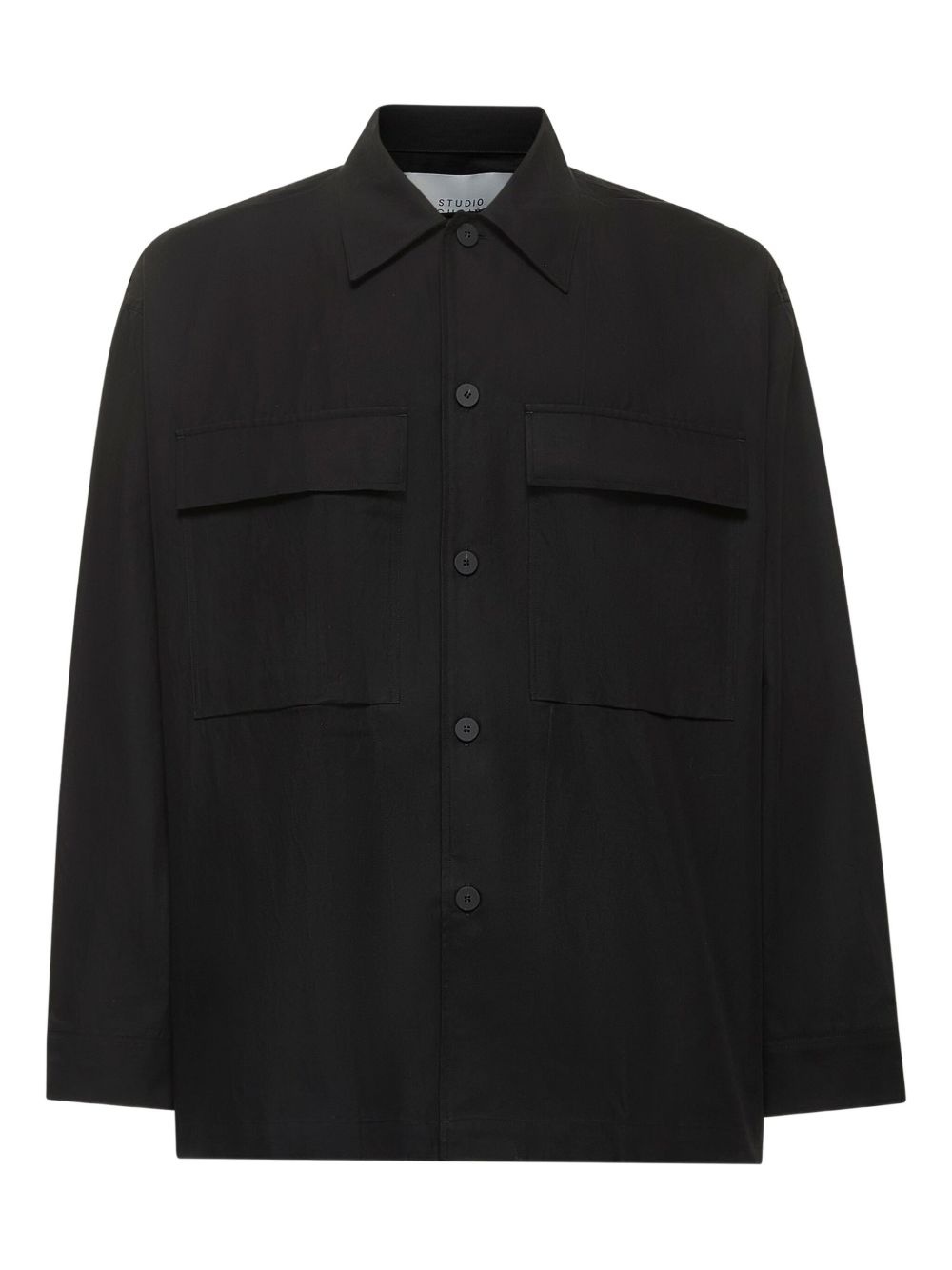 cotton-blend shirt Highlights - Black - Front button fastening - Long sleeves - Buttoned cuffs - Patch chest pocket Imported Composition Cotton 57%, Polyamide 43% Washing instructions Read Manufacturer Guidelines