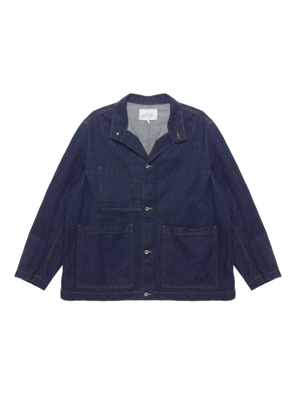 crinkle denim jacket Highlights - Indigo blue - Button fastening - Patch pockets - Stand collar - Long sleeves Imported Composition Cotton 100% Washing instructions Read Manufacturer Guidelines